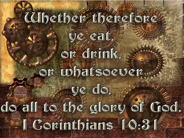Whether therefore ye eat, or drink, or whatsoever ye do, do all to the glory of God. I Corinthians 10:31