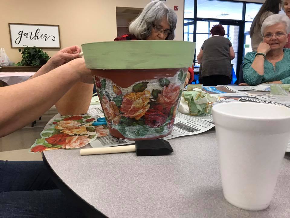It was the best women’s event I’ve ever been to. It was simple, not too structured, and very sweet fellowship. Below are a couple more pictures of activities — brunch, knitting, and decoupage. Good times!